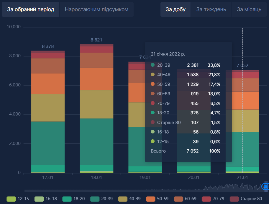 Наступні за кількістю щеплень люди віком від 40 до 49 років – 1 тисяча 538 щеплень (21,8 % від загальної кількості).