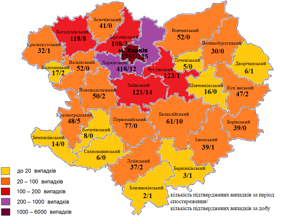 За інформацією Харківського лабораторного центру, минулої доби на Харківщині зареєстрували 291 новий випадок коронавірусу, що стало новим добовим антирекордом. 225 хворих виявили у Харкові. Ще 66 нових випадків зафіксовані у 16 районах Харківської області – Зміївському (14), Харківському (12), Балаклійському (10), Богодухівському (8), Красноградському (5), Дергачівському (3), Коломацькому (2), Куп’янському (2), Лозівському (2), Нововодолазькому (2), Барвінківському (1), Близнюківському (1), Дворічанському (1), Ізюмському (1), Краснокутському (1) та Чугуївському (1).