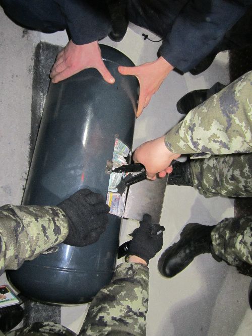 За результатами проведеного детального обшуку автомобіля оперативними працівниками податкової міліції у багажному відділені в середені газового балону (на вигляд повністю робочий балон газового обладнання автомобіля) виявлено та вилучено 39 мільйонів російських рублів.