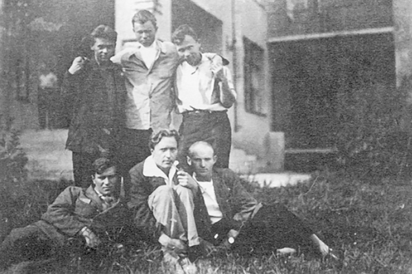 Антон Вальтер (унизу праворуч) зі співробітниками перед головним корпусом УФТІ. Фото 30-х років