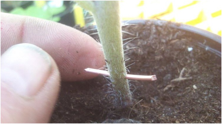 Вважається, що розмноженню шкідливих спор запобігає достатній вміст міді в рослині. Тому як запобіжний захід проти фітофторозу використовують мідний дріт: нарізають його відрізок на шматочки завдовжки 3-5 см (залежно від товщини стебла), кожний з яких ретельно зачищають наждачним папером. Після чого нижню частину стебла кожної рослини проколюють дротом, його кінці загинаються вниз, але не закручують навколо стебла. Вважається, що так рослина насичується міддю, мікродози якої, крім іншого, стабілізують хлорофіл, стимулюють дихання рослин і підсилюють окислювальні процеси.
