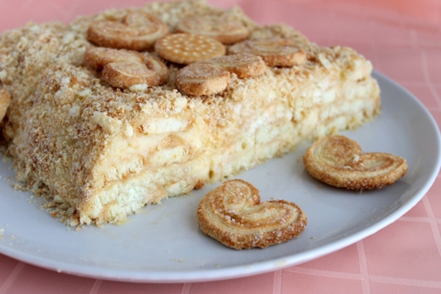 Лінивий «Наполеон» з листкового печива «Вушка» без випікання