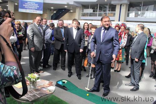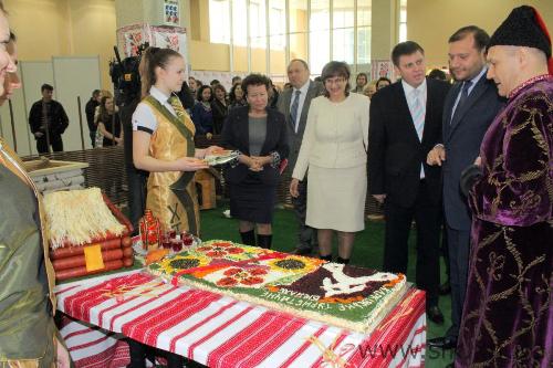 Почесну церемонію перерізання червоної стрічки (звісно ж, їстівної) покладено на губернатора Харківської області. Першою гідно оцінила смак унікальної за розмірами страви заступник голови Державного агентства України по туризму та курортам Валентина Гордієнко. У захваті вона і від самої ідеї проведення туристичної виставки.