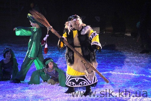 На сцені Харківського палацу спорту співали і танцювали Карабас Барабас, Баба Яга, чудернацькі тварини, принц та принцеса, Дід Мороз та Снігуронька.