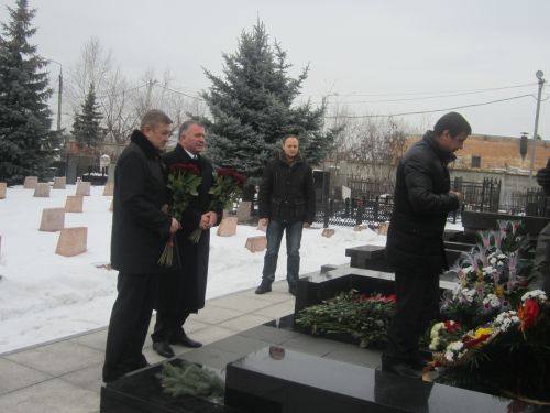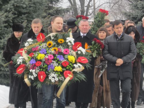 До обеліску прийшли покласти квіти голова Харківської обласної ради Сергій Чернов, перший заступник голови облдержадміністрації Валентин Дулуб, рідні, близькі, товариші, колеги та звичайні люди, аби віддати данину пам'яті визначні особистості.
