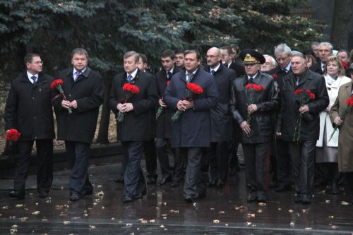 Вони поклали квіти, було виконано державний гімн. 68-й річниці визволення України було присвячено урочисте проходження колон курсантів різних родів військ, відбулась паніхіда. Також пролунало дев'ять холостих пострілів з рушниці.