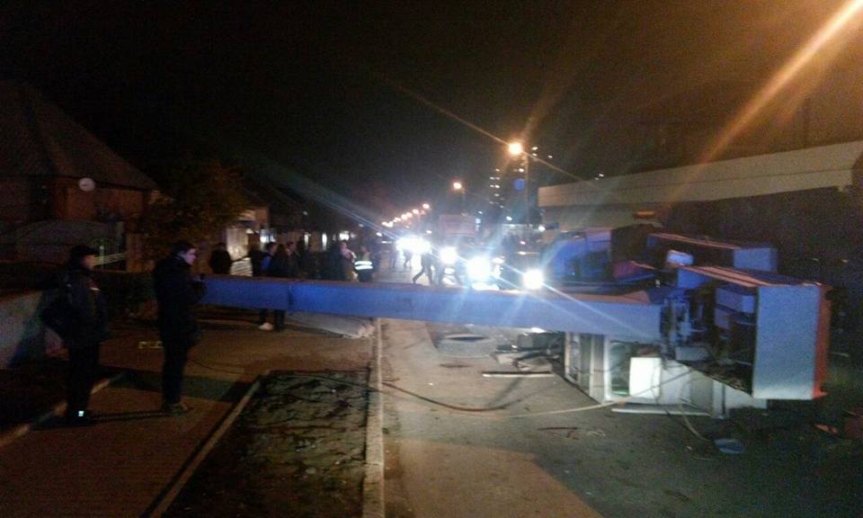 Через падіння автокрану рух транспорту виявився заблокованим (Фото)
