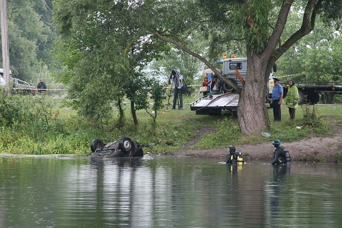 Автомобіль з тілами загиблих за допомогою тросів та двох евакуаторів було піднято на поверхню. Загиблими виявилися мешканці м. Чугуєва.