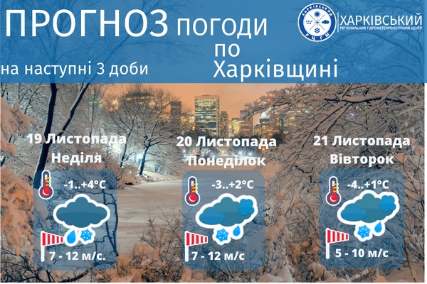 Погода на Харківщині 19 листопада: насувається снігопад