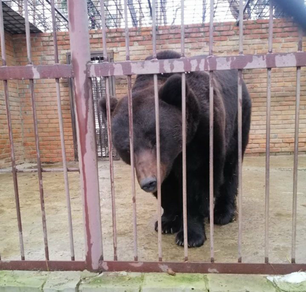 Там у вольєрах з цементованою підлогою закрито п’ять ведмедів (три бурі і два гімалайські), два леви (лев і левиця), тигриця, ягуар, два пелікани (у вольєрі з порожнім басейном і наполовину порожнім відром протухлої води), барани (в загоні без сіна), куріпки та фазани. За інформацією Асоціації зоозахисних організацій України, тварин виявили виснаженими та апатичними, а в жодному з вольєрів не було слідів їжі.