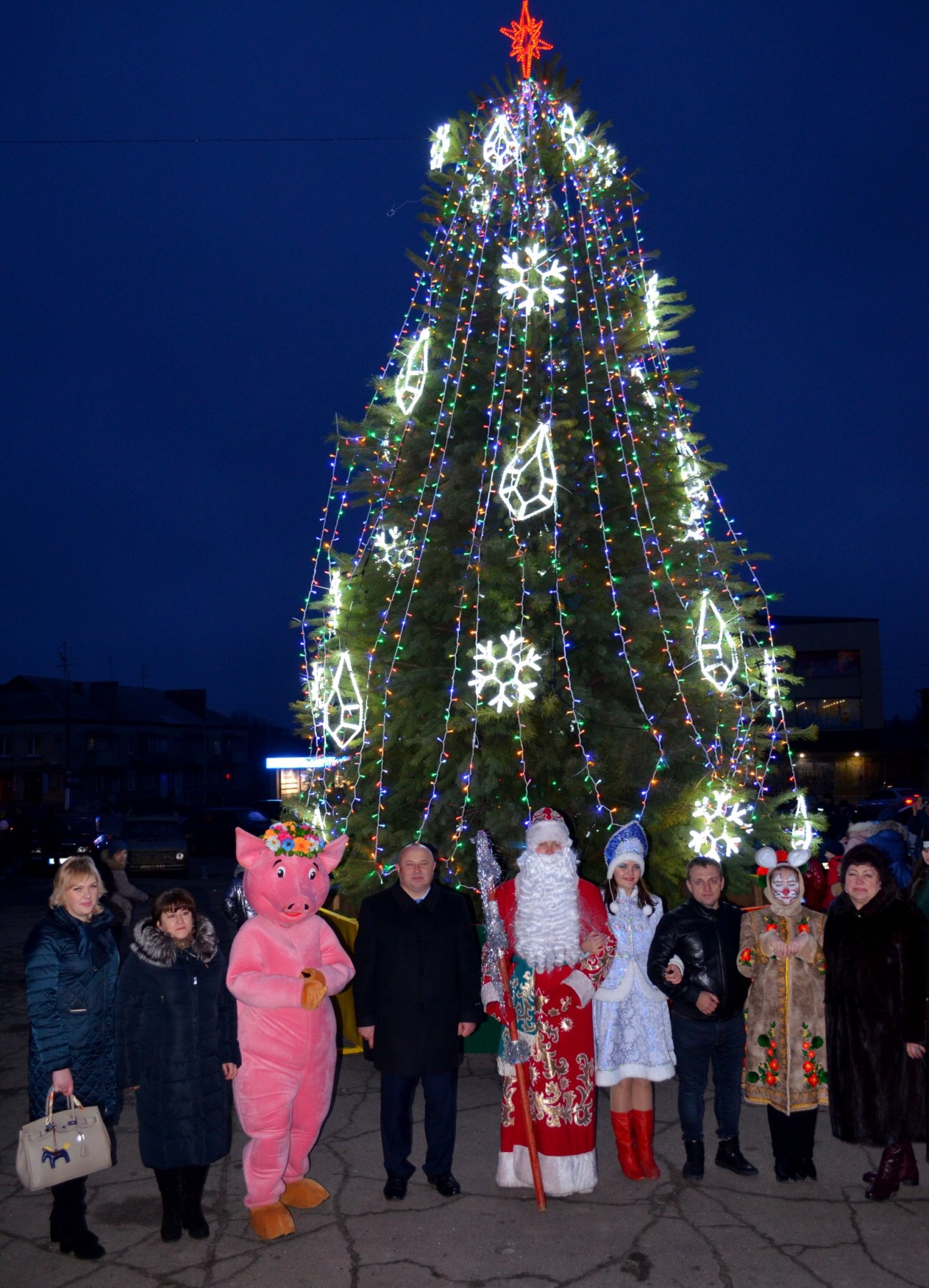 Так, цього року головну ялинку місту подарувала родина Мирних із села Нікополь.