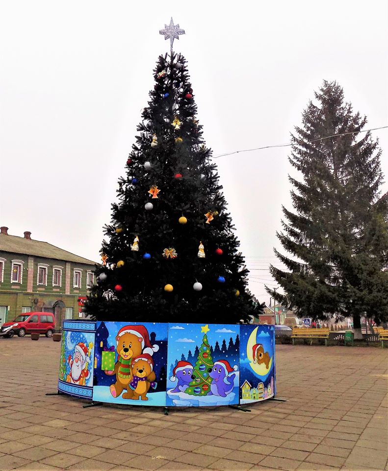 Інша, так само збірна ялинка з’явилася на площі біля райдержадміністрації.