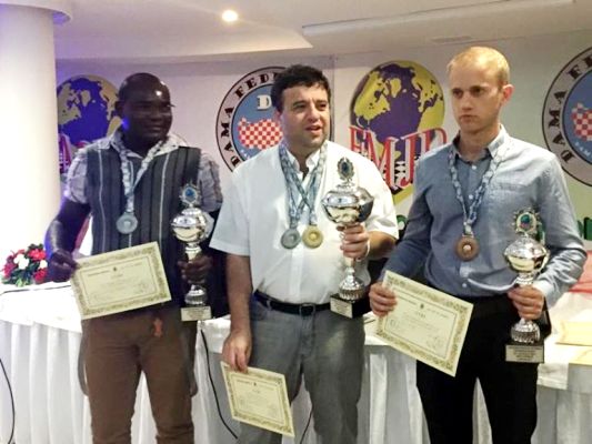 Чемпіонат проходить 25-31 жовтня в турецькому місті Ізмір. Юрій Анікеєв виборов "срібло" та "бронзу" в шашках на 100 клітинах в турнірах з бліцу та швидких шашках.