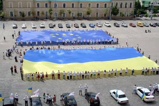 Друга група активістів тримала прапор Євросоюзу. Так пройшла акція «Харківщина - це Європа».
