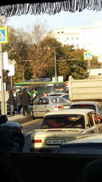 Вранці на перехресті просп. Гагаріна та вул. Кірова у Харкові іномарка зіткнулася з вантажівкою, в результаті чого утворився величезний затор.