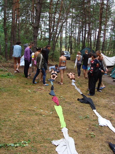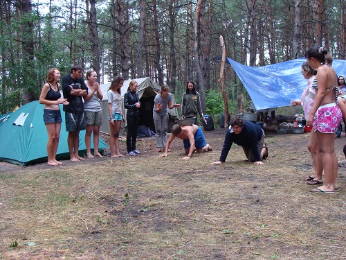 Путанка. Потрібно пролізти під мотузками, натягнутими над багнетами лопат.