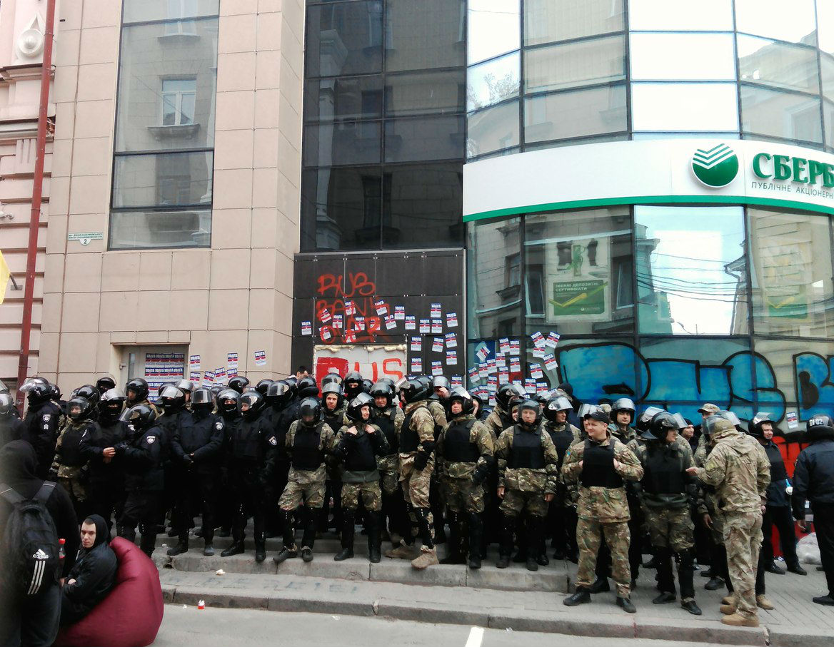 За непідтвердженою інформацією, частина активістів знаходяться всередині будівлі банку.