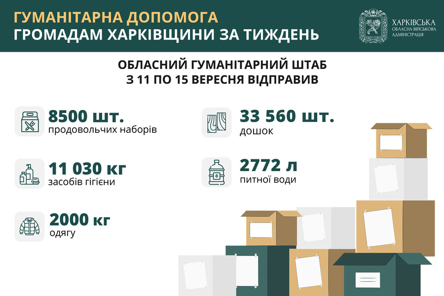 Гуманітарна допомога громадам Харківської області з 11 по 15 вересня / Інфографіка ХОВА