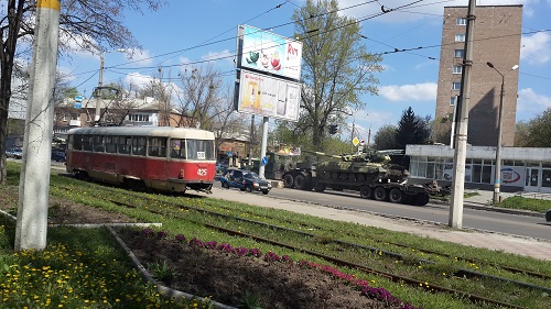 У Харкові по найдовшій вулиці міста Клочківській провезли два танки на тягачах.