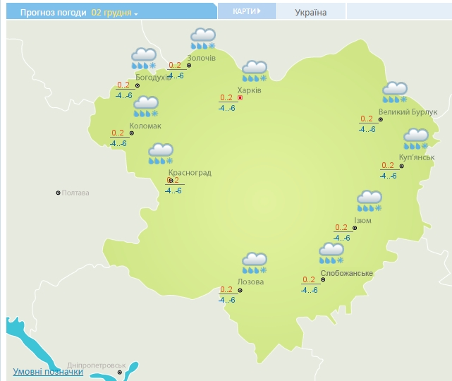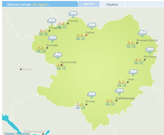 2 грудня у зв'язку з переміщенням циклону з північного заходу очікуються складні погодні умови