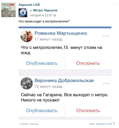 У Харківському метрополітені близько 12.00 було призупинено рух потягів. На станції Радянська велике стовпотворіння через пасажиропотік. За свідченнями очевидців, потяг простояв у тонелі близько 15 хвилин.