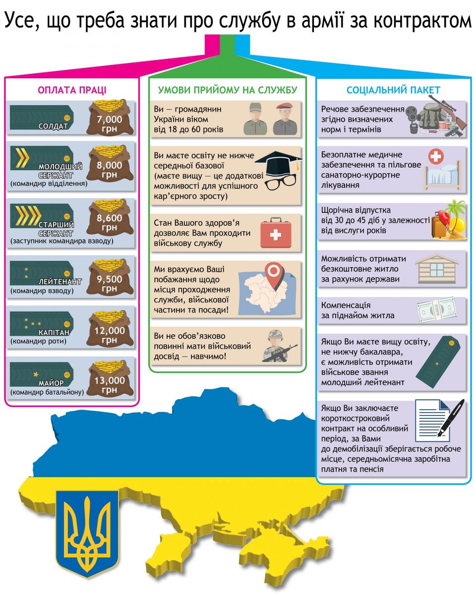 Інформація щодо умов оплати праці, прийому на службу та системи соціального захисту військових-контрактників.