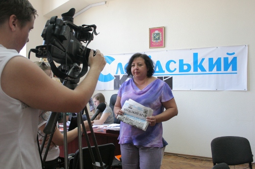 - Наша редакція рік працює зі «Школою юного журналіста». Ті діти, які проходили заняття у нас, багато чому навчились,  -говорить головний редактор газети «Слобідський край Лариса Гнатченко». - Сьогодні підсумкове заняття, вони повністю самі створюють газету. Звісно, це буде скоріше листівка, але вони зроблять її самі починаючи від написання текстів до складання обкладинки. Це тільки перші кроки, але кроки у них дуже успішні.