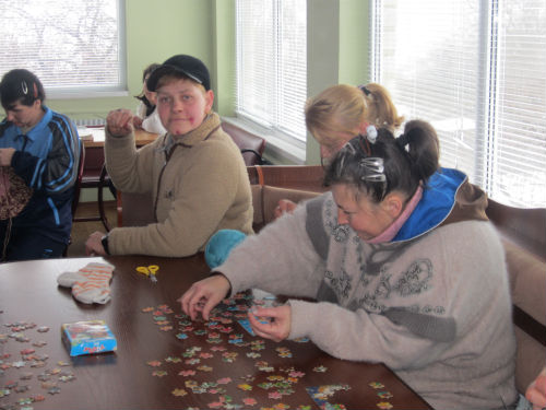 Деякі хворі лежачі і тому потребують особливого догляду. Жінки, які здатні фізично працювати, самі перуть, працюють на городі, а ще в’яжуть, малюють, вишивають тощо.