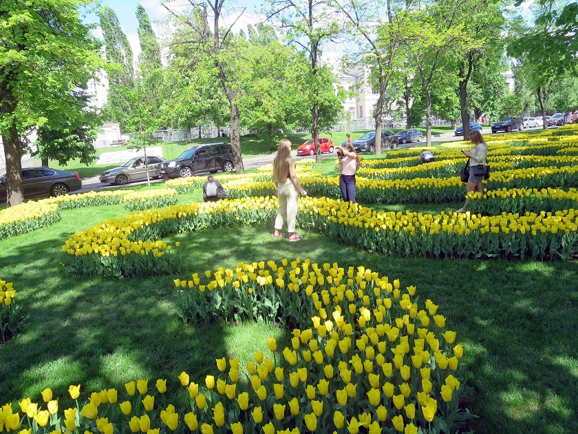 Клумба із сотень жовтих тюльпанів розташована на проспекті Незалежності.