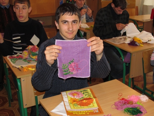 Стіни інтернату, класних кімнат прикрашають вишивки юнаків. З допомогою тканини, голки і нитки вихованці можуть зобразити будь-який пейзаж, вишити Тараса Шевченка і навіть весільні рушники.