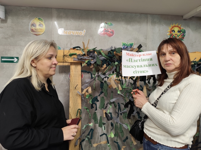 Ще одна учасниця ярмарку – Лариса Калашник, керівниця гуртка народних ремесел Обласної станції юних туристів, провела майстер-клас із виготовлення ляльок-мотанок. Діти із задоволенням робили янголів, птахів, котиків. Будь-хто міг долучитися до плетіння маскувальних сіток для українських оборонців.