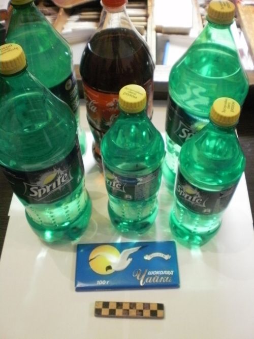 Пляшки об'ємом в 2 та 1 літр були виявлені за допомогою рентгенотелевізійної установки. За допомогою пристрою було встановлено, що в пляшках міститься рідина з високим вмістом алкоголю.