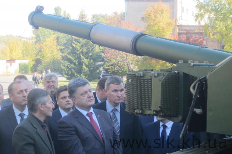 Сьогодні з візитом до Харкова прибув Президент України Петро Порошенко. Першим місцем, яке відвідав Президент, став завод імені Малишева. Там йому продемонстрували бойовий танк «ОПЛОТ».