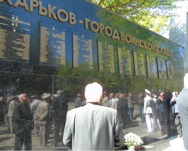 На гранітній плиті висічені імена 227 Героїв Радянського Союзу (трьом звання присвоєно двічі), 31 повного кавалера ордена Слави, двох нагороджених чотирма медалями "За відвагу". Всі вони - уродженці Харківської області.