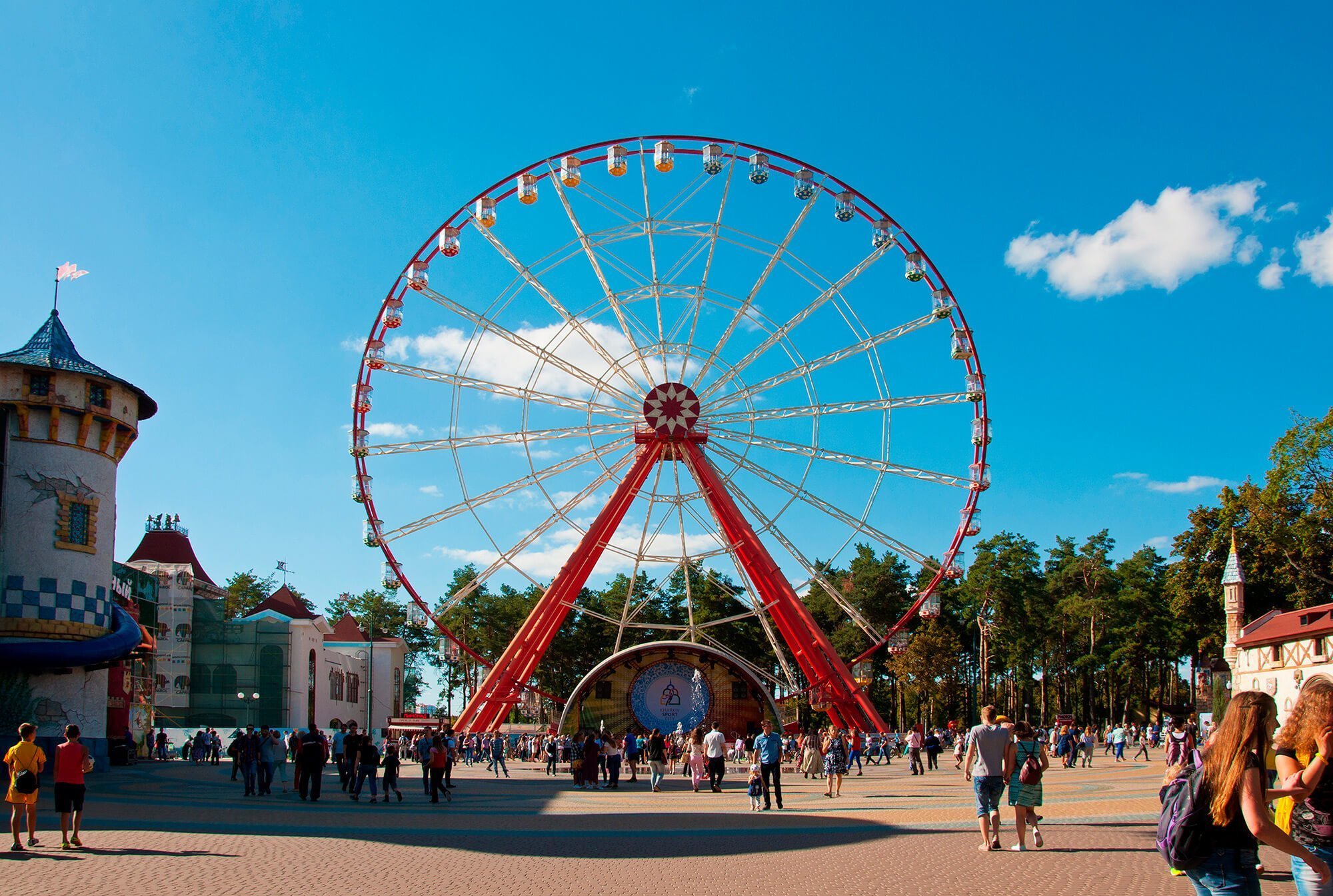 Якщо ви шукаєте щось особливе для дітей або просто хочете провести активний день, вирушайте до парку імені Горького. Після реконструкції він став справжньою перлиною Харкова. Колесо огляду, екстремальні та дитячі атракціони, канатний парк, алеї, зони відпочинку, кафе — все це робить парк схожим на міні-Діснейленд.