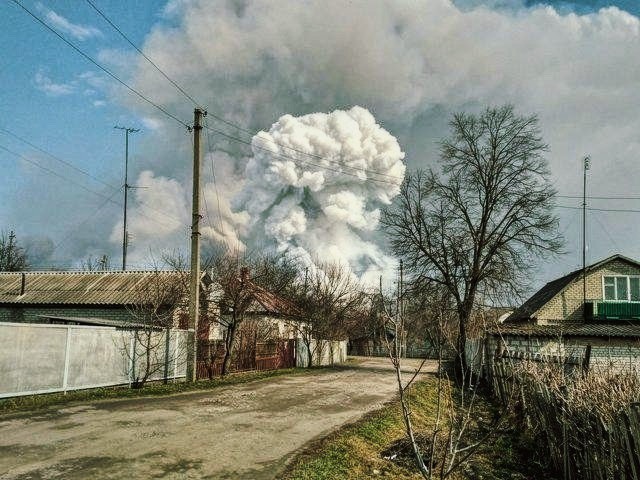 Цієї ж миті в небо здійнявся стовп диму. То знову «рвалася» база, втретє з 2017-го. Ворожа авіація спершу щедро «пройшлася» запасами військового арсеналу, а за дві хвилини поспіль ударила по міському військовому заводу. Майже на одній паралелі кучерявились уже два стовпи диму.