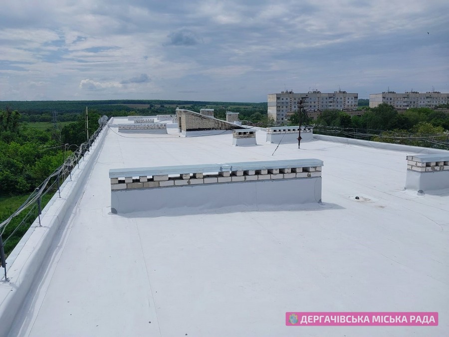 У місті Дергачі Харківської області завершені роботи з відновленні даху багатоповерхового будинку 10В по вулиці Садовій.