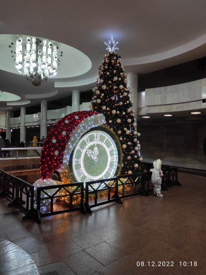 Платформу станції метро «Університет» у Харкові прикрасили новорічними гірляндами.