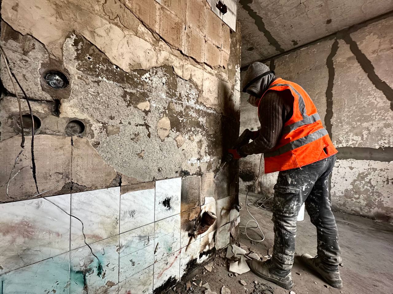 У Харкові триває відновлення багатоповерхівки на вулиці Наталії Ужвій, зруйнованої внаслідок бойових дій.
