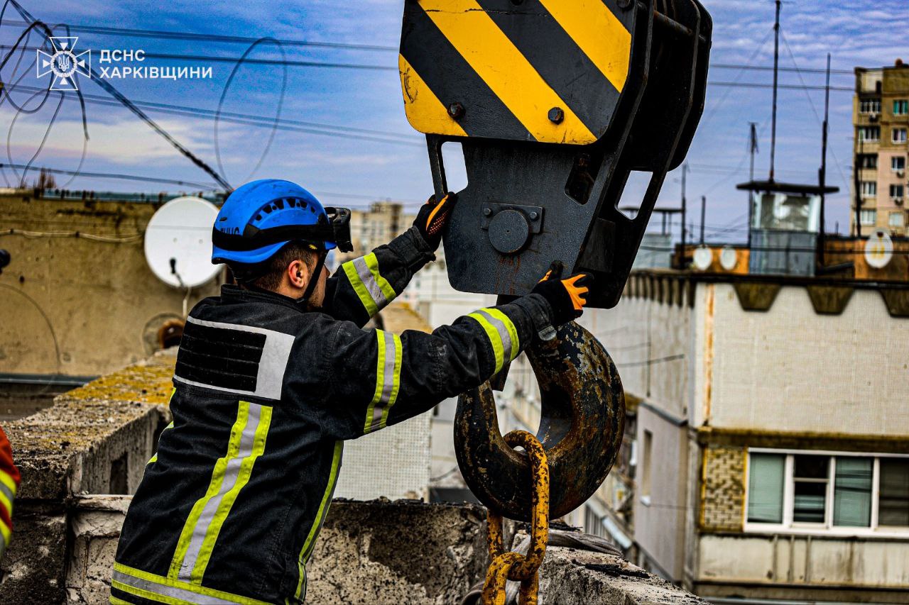 На місці обстрілу Харкова рятувальники розбирали аварійні конструкції (фото)