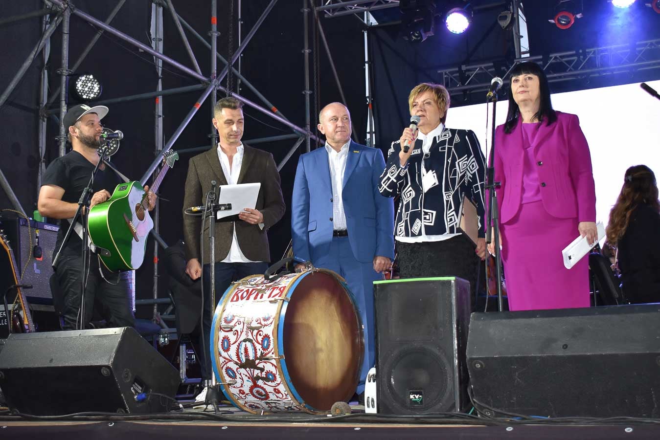 Голова Краснокутської селищної ради Ірина Карабут привітала гостей концерту і нагадала, як у 2009 році вперше на Співочих терасах був заснований етнофестиваль. Очільниця громади подякувала всім організаторам та учасникам заходу, завдяки якому громада стала відомою далеко за межами Богодухівського району і Харківської області.