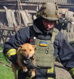 13 червня під час ліквідації пожежі в селі Петропавлівка Харківської області рятувальники помітили переляканого через обстріл собаку, який заплутався у власному ланцюгу.