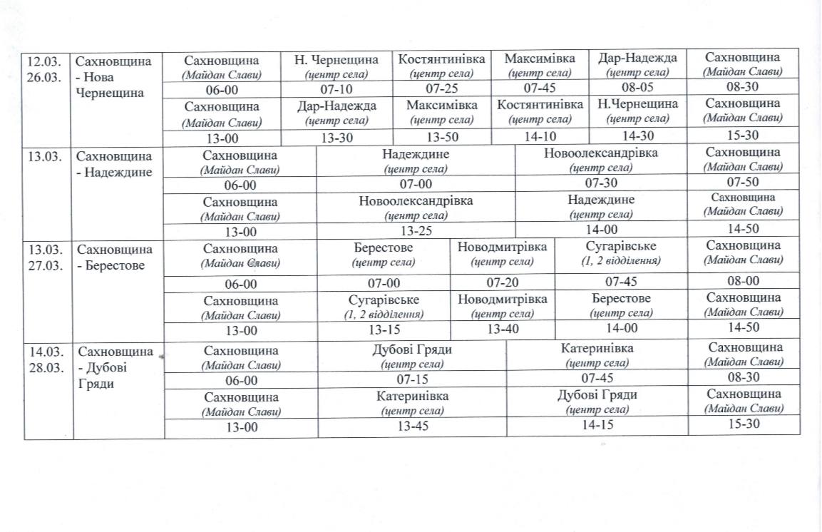 Розклад соціального автобуса на березень / Фото: Сахновщинська громада