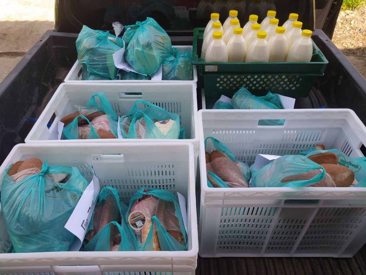 Спочатку кондитерський цех перелаштували і пекли там хліб. Дріжджів не було, тому працівниці підприємства самостійно вирощували закваску. Також на фермі не було достатньо великих запасів борошна, працівники шукали шляхи, як це борошно дістати. Тимчасовим рішенням було випікати кукурудзяний хліб. На комбікормовій установці перемелювали кукурудзу, якою годували корів, та просіювали отримане через сито. Дрібну фракцію залишали для випікання хліба, крупну – відправляли худобі. Вже через 2-3 тижні почало з’являтися борошно, яке можна було придбати.