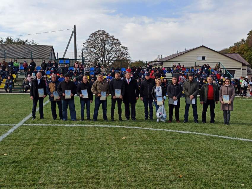 І насправді, внесок людей у будівництво стадіону не залишився непоміченим. Тож подяку за сумлінну працю і високий професіоналізм від ПСП ім. Фрунзе отримали виконавчий директор Анатолій Трохимець, бригадир дільниці Роман Пода, трактористи Сергій Столяренко, Валентин Ткаченко та Олександр Тищенко, водій Василь Куліш, виконуючий обов’язки головного енергетика Максим Драбинко, електрик В’ячеслав Делія, бригадир будівельної бригади Іван Варениця, головний агроном ПСП ім. Фрунзе, депутат Зачепилівської селищної громади Роман Корочанський, депутат Красноградської райради