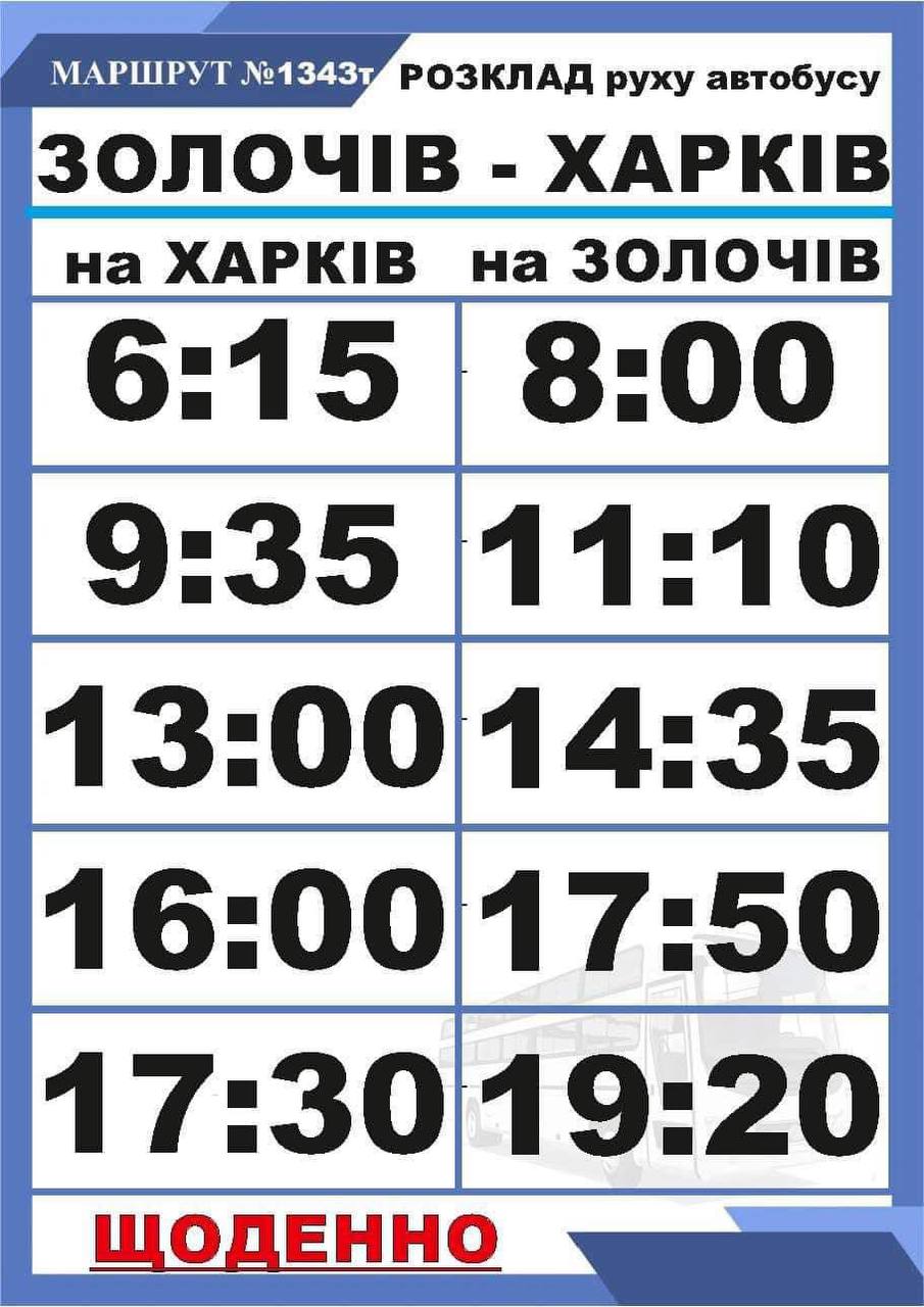З 1 березня 2024 року оновлено графік руху автобуса за маршрутом № 1343т Золочів – Харків – Золочів.