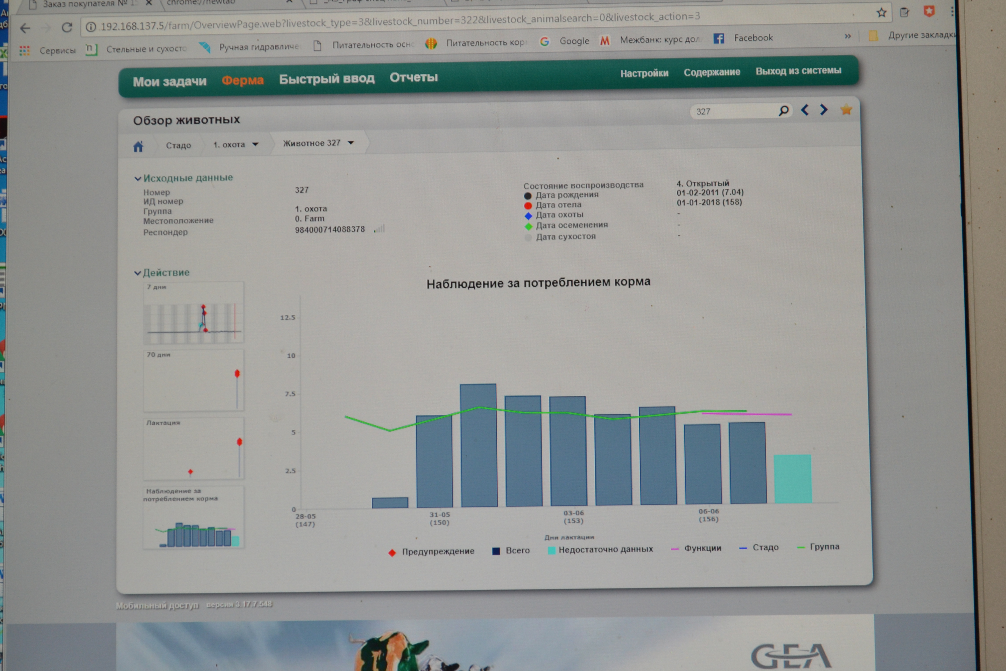 Пані Наталія розповіла, що специфіка виробництва молочної сировини екстра-класу не передбачає тривалого зупинення та зволікань. Усього на підприємстві 260 корів породи українська чорноряба, кожна дає близько 23 літрів молока на добу. На кожну встановлено спеціальні респондери. Завдяки встановленій програмі кожна корова ідентифікується під час доїння. Фахівці підприємства відзначають, скільки молока дала кожна з корів. Також ведеться ветеринарна, генетична картка кожної тварини, в якій зберігаються дані про надої минулих років. Окрім цього, у господарстві працює програма виявлення найкращого часу для запліднення корів. Наразі на фермі 30 голів оснащені спеціальними нашийниками, які виявляють активність тварин, а вся зібрана інформація за необхідності в будь-який час виводиться на монітори комп’ютерів.