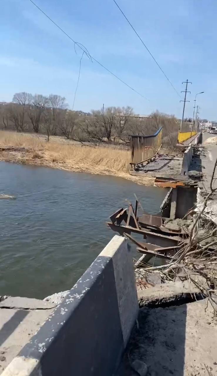 (Фото: Зруйнований міст у Куп’янську на початку весни)