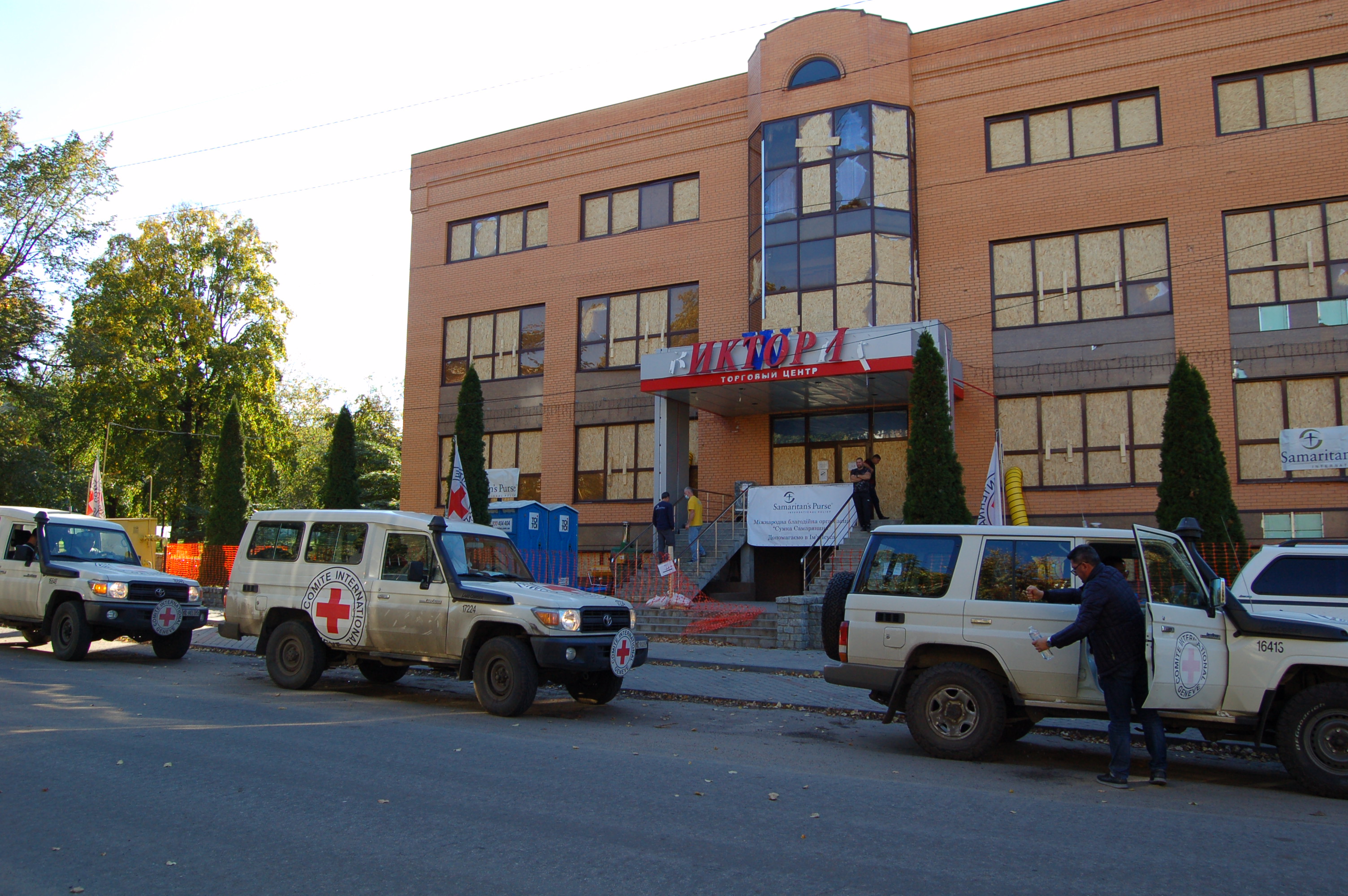 До Ізюмської центральної міської лікарні імені ікони «Піщанської Богоматері» волонтери передали сучасний автомобіль Opel Vivaro з медичним обладнанням, а також пересувний рентген-апарат, УЗД-апарат, апарат штучного дихання легень, дефібрилятори і ліки від гострих вірусних та респіраторних захворювань. А Міжнародне Товариство Червоного Хреста в Україні передало Ізюмському центру первинної медико-санітарної допомоги сучасний реанімобіль марки Toyota, а також значний запас медикаментів.